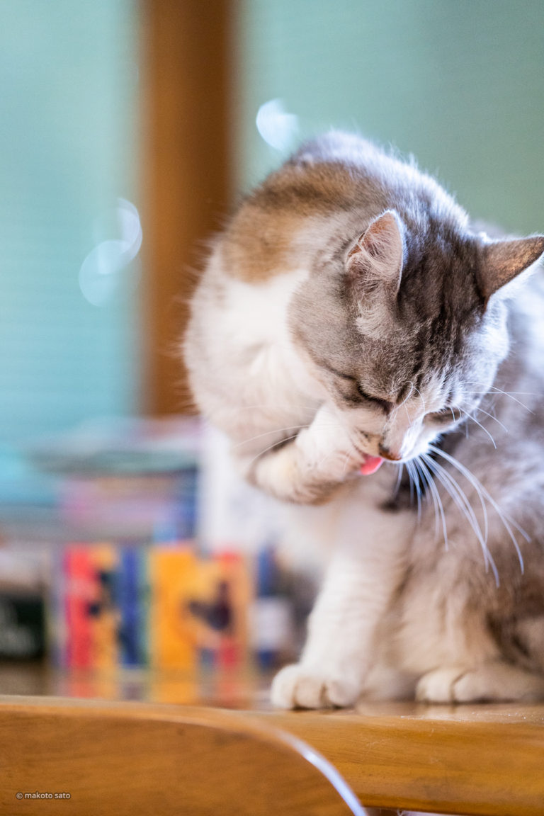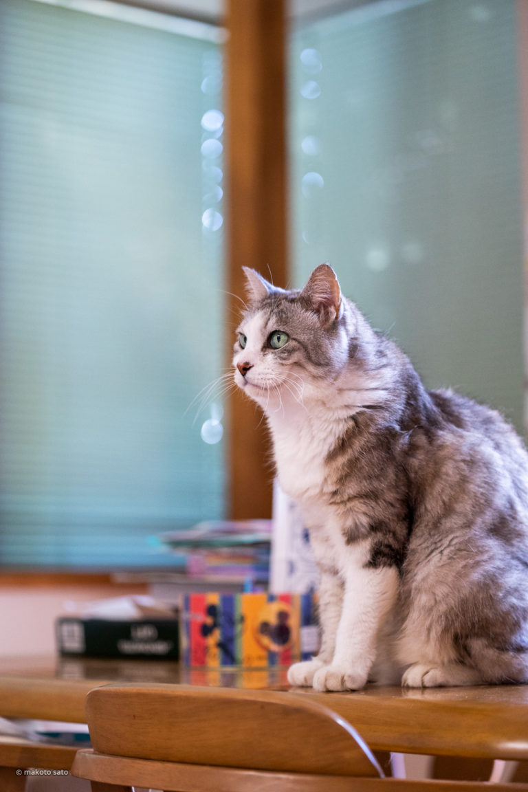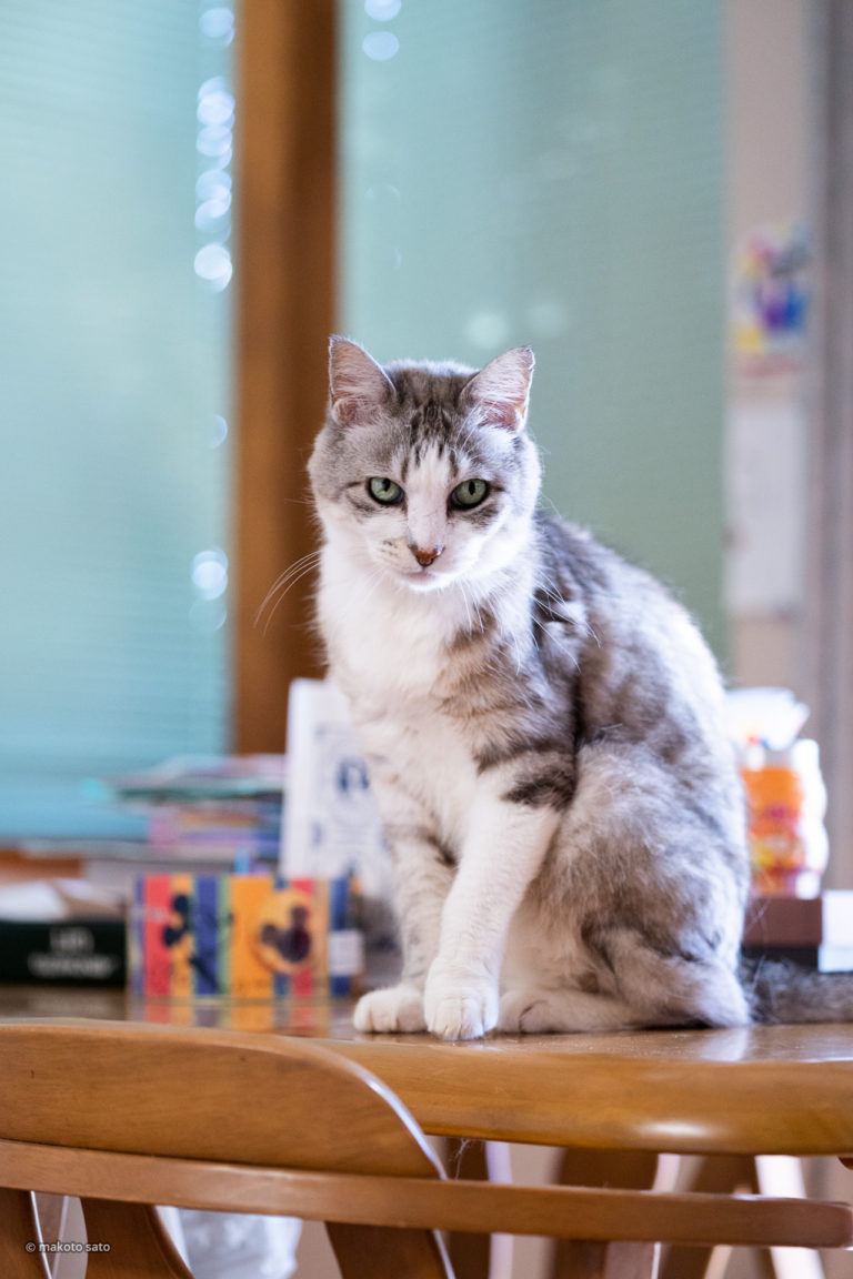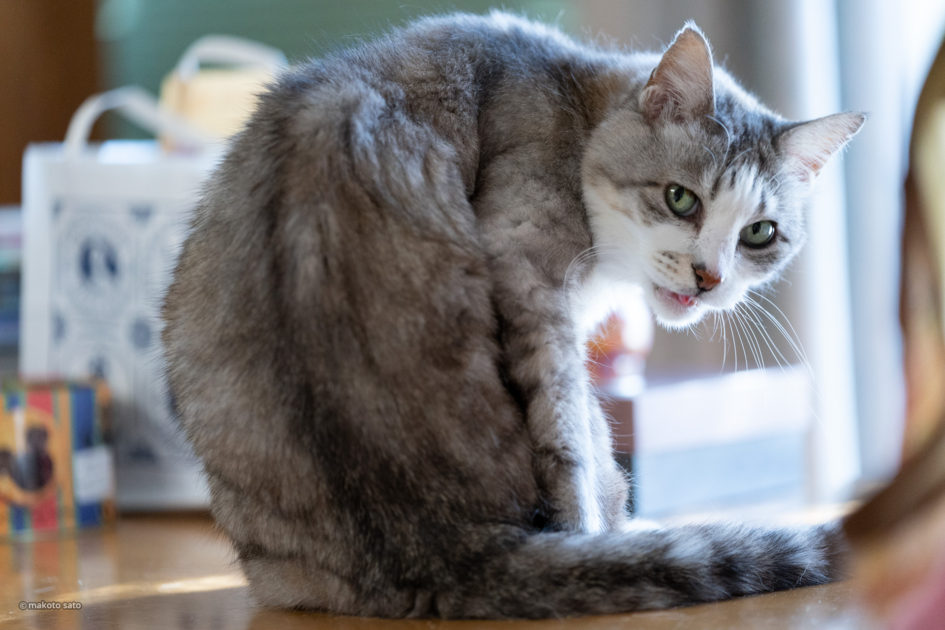 チラリとこちらを窺うギンタ。ちょこっと舌が出てますよ(^_^) 仕草が可愛くて許してしまうのですが、場所が食卓の上っていうのが、やっぱりちょっと・・・ね。 カテゴリ: ギンタ2018年8月23日コメントを残すタグ: ギンタSony Alpha a9Sony FE 70-200mm F2.8 GM OSS この投稿をシェアする TweetShare on Twitter Share on FacebookShare on Facebook Pin itShare on Pinterest Share on LinkedInShare on LinkedIn Post navigation前の記事Previous post:毛繕い次の記事Next post:眼差し関連投稿くるっとターン2019年12月18日タワーの上のギンタ22019年12月17日タワーの上のギンタ2019年12月17日猫ぱんち?2019年12月17日大あくび2019年12月11日座りながら後ろ足のお手入れ2019年12月4日