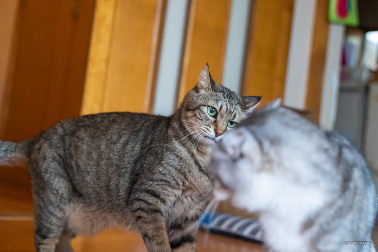 ギンタが歩いていると、フラリと虫の居所の悪そうなキンタが登場。ふいにギンタに近づいて来たかと思いきや、おもむろに猫パンチ! ギンタ「一体、どうしたって言うのニャ!」 カテゴリ: キンタ, ギンタ2018年9月15日コメントを残すタグ: キンタギンタSony Alpha a9Sony FE 24-70mm F2.8 GM この投稿をシェアする TweetShare on Twitter Share on FacebookShare on Facebook Pin itShare on Pinterest Share on LinkedInShare on LinkedIn Post navigation前の記事Previous post:真っ逆さま次の記事Next post:監視スペース関連投稿キンタ永眠しました2023年10月29日満20歳となったキンタ2023年8月20日1年ぶりの猫の日キンタ2023年2月22日スーパー猫の日のキンタ2022年2月22日振り向くキンタ2022年2月19日なんだい?2021年11月30日