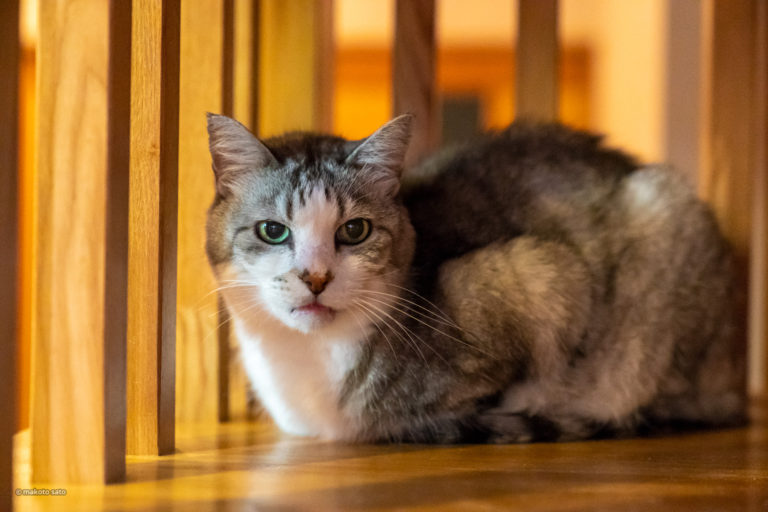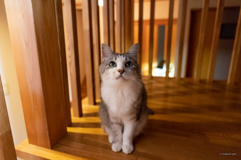 階段の踊り場は、その外側に対しては監視スペースの様な場所です。ギンタはここから、ジッと周辺を見渡して過ごす事も多くあります。 ちょっと回り込んで、階段の方からお邪魔してみました。 ギンタ「何ニャ?」 カテゴリ: ギンタ2018年9月15日コメントを残すタグ: ギンタSony Alpha a9Sony FE 24-70mm F2.8 GM この投稿をシェアする TweetShare on Twitter Share on FacebookShare on Facebook Pin itShare on Pinterest Share on LinkedInShare on LinkedIn Post navigation前の記事Previous post:虫の居所が悪いキンタ次の記事Next post:たま〜に、ワルイ目してる。関連投稿くるっとターン2019年12月18日タワーの上のギンタ22019年12月17日タワーの上のギンタ2019年12月17日猫ぱんち?2019年12月17日大あくび2019年12月11日座りながら後ろ足のお手入れ2019年12月4日