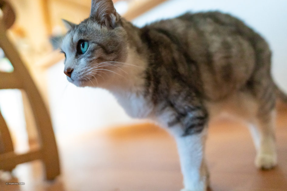 テーブル下へやってきたギンタ。ちょうどここはご飯スペースの裏手になるところ。しばらくすると、イスをよじ登り、テーブル上で鎮座しました。 今回の写真は、ソニーさんから試用でお借りした、Sony FE 24mm F1.4 GMレンズで撮影しました。F1.4での撮影ですが、動物瞳AFのお陰でピント操作はギンタの瞳に全自動です(^_^) カテゴリ: ギンタ2019年10月10日コメントを残すタグ: ギンタSony Alpha a9Sony FE 24mm F1.4 GM この投稿をシェアする TweetShare on Twitter Share on FacebookShare on Facebook Pin itShare on Pinterest Share on LinkedInShare on LinkedIn Post navigation前の記事Previous post:へんてこ毛繕い次の記事Next post:ひさびさの猫パンチ関連投稿くるっとターン2019年12月18日タワーの上のギンタ22019年12月17日タワーの上のギンタ2019年12月17日猫ぱんち?2019年12月17日大あくび2019年12月11日座りながら後ろ足のお手入れ2019年12月4日