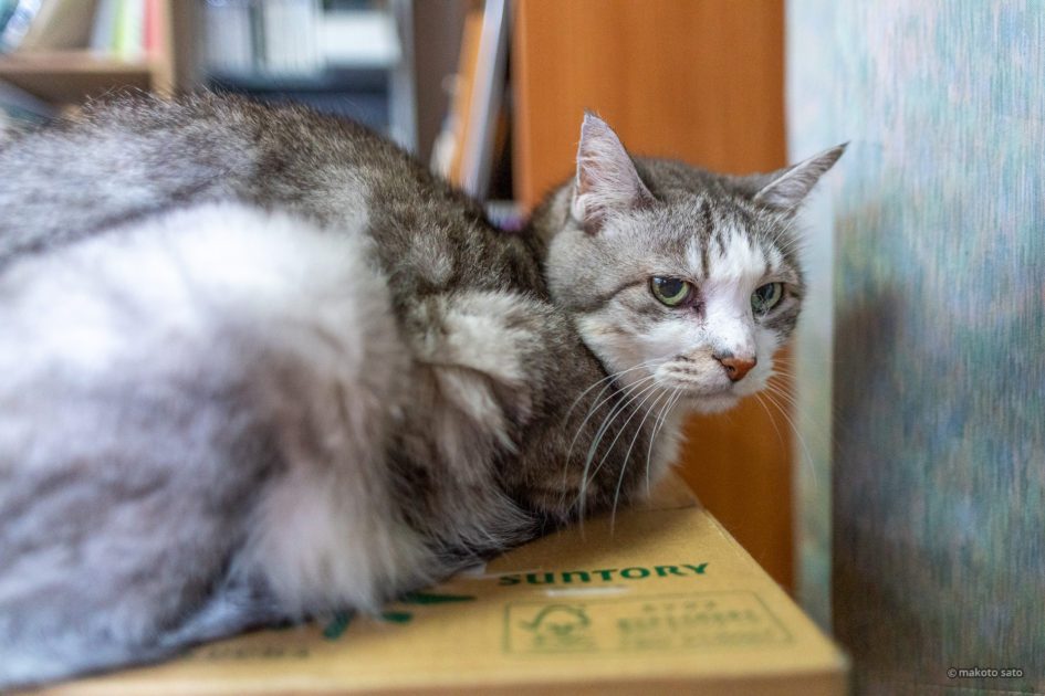 箱(特茶)の上に鎮座しているギンタ。こうなると、なかなか動じません。 カテゴリ: ギンタ2019年10月8日コメントを残すタグ: ギンタSIGMA 24mm F1.8 EX DG ASPHERICAL MACROSIGMA MC-11Sony Alpha a7R III この投稿をシェアする TweetShare on Twitter Share on FacebookShare on Facebook Pin itShare on Pinterest Share on LinkedInShare on LinkedIn Post navigation前の記事Previous post:あくび〜次の記事Next post:机下のキンタ関連投稿くるっとターン2019年12月18日タワーの上のギンタ22019年12月17日タワーの上のギンタ2019年12月17日猫ぱんち?2019年12月17日大あくび2019年12月11日座りながら後ろ足のお手入れ2019年12月4日