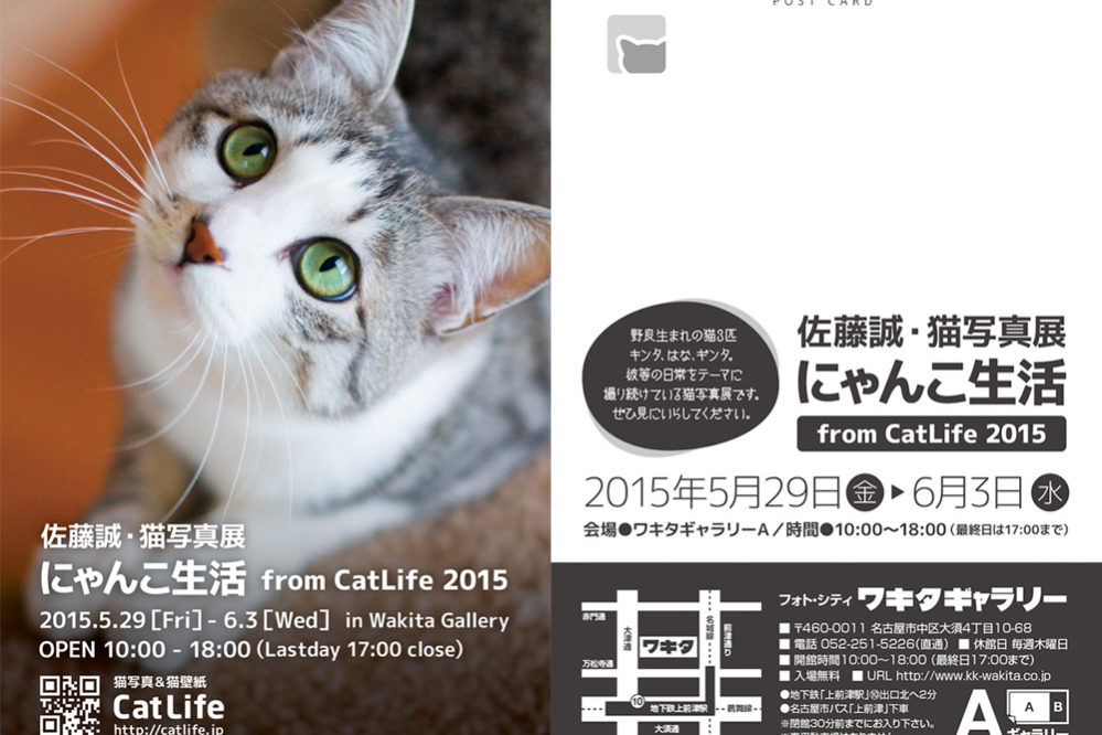 4月292015お知らせ 2015年5月29日(金)〜6月3日(水)の日程にて、4年前の2011年にお世話になりました、名古屋・大須のワキタギャラリーさんにて CatLifeの写真展を行います。以前は大小あるギャラリーの内、奥間のBギャラリーでしたが、今回は手前の大きなAギャラリーでの展示となります。開場時間は10:00〜18:00(最終日のみ17:00まで)、入場無料です。 カテゴリ: お知らせ2015年4月29日コメントを残す この投稿をシェアする TweetShare on Twitter Share on FacebookShare on Facebook Pin itShare on Pinterest Share on LinkedInShare on LinkedIn Post navigation前の記事Previous post:電子書籍版「CatLife 猫写真カレンダー2015」発売中次の記事Next post:CatLife猫壁紙2015年3月、4月をアップしました関連投稿キンタ永眠しました2023年10月29日CatLife猫壁紙2015年3月、4月をアップしました2015年5月18日電子書籍版「CatLife 猫写真カレンダー2015」発売中2015年2月4日2014年の猫壁紙を順次アップ中です2015年1月10日2015年版CatLife卓上カレンダー販売開始2014年10月4日佐藤誠・猫写真展「にゃんこ生活2014 from CatLife」のご案内2014年9月29日