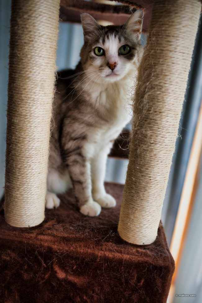 ささくれタワー ギンタBy makoto2018年7月20日コメントを残すキャットタワーの柱に巻いてある縄は、もちろん爪とぎ用。割とピンポイントでトギトギするので、すぐにささくれてしまいます。現在使っているタワーは、縄部分の交換が出来ないので、思ったより早く世代交代かな。