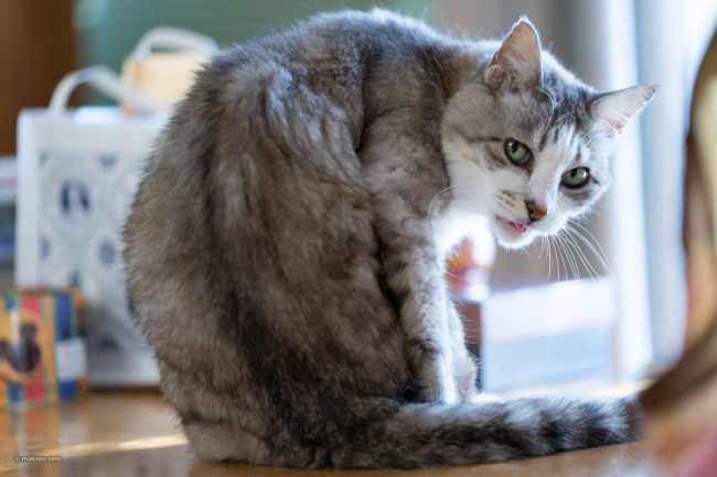 食卓の上のギンタ ギンタBy makoto2018年8月23日コメントを残すチラリとこちらを窺うギンタ。ちょこっと舌が出てますよ(^_^) 仕草が可愛くて許してしまうのですが、場所が食卓の上っていうのが、やっぱりちょっと・・・ね。