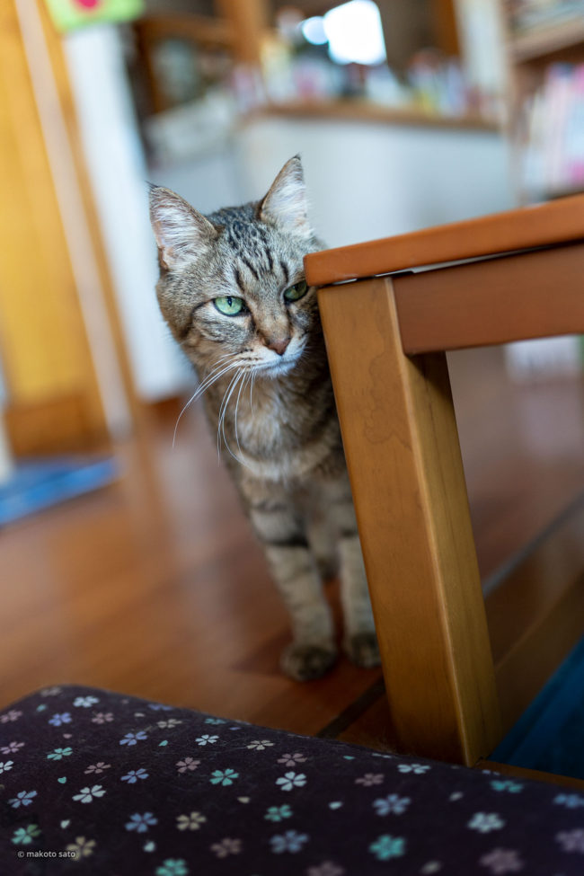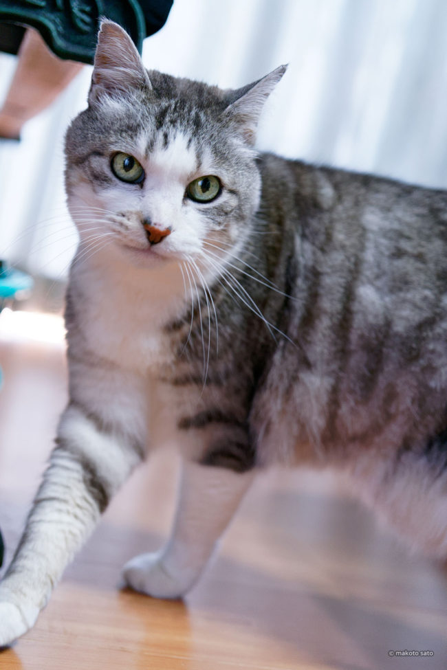 階段の踊り場スペースに腰を下ろすギンタ。午後の、少し気だるい感じの中、まったりと過ごしています。