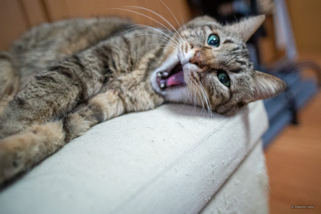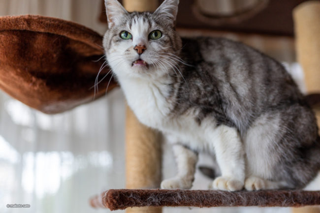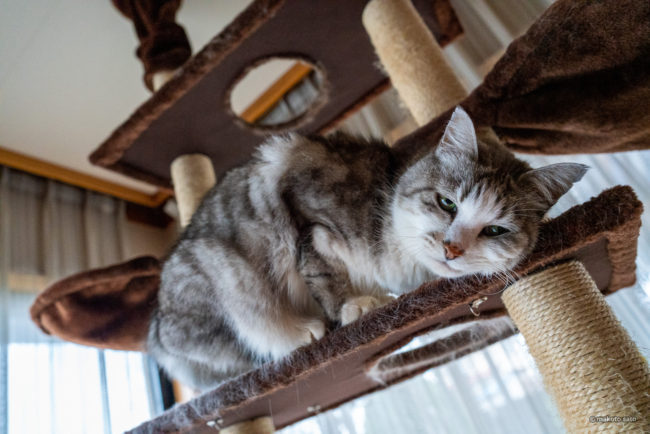 タワーの上で、ちょっと優しい、猫ぱんち。