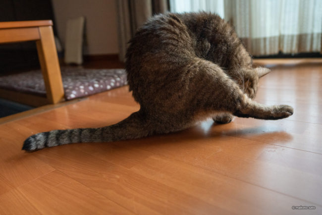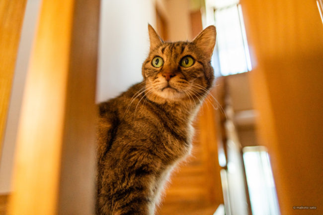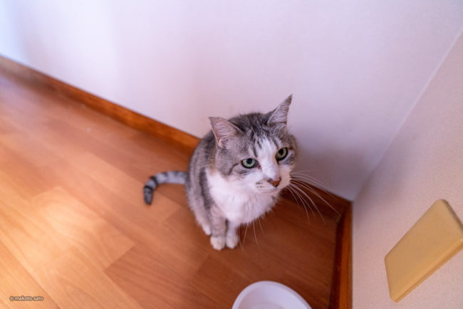 テーブル下からテーブル上へ ギンタBy makoto2019年10月10日コメントを残すテーブル下へやってきたギンタ。ちょうどここはご飯スペースの裏手になるところ。しばらくすると、イスをよじ登り、テーブル上で鎮座しました。 今回の写真は、ソニーさんから試用でお借りした、Sony FE 24mm F1.4 G…
